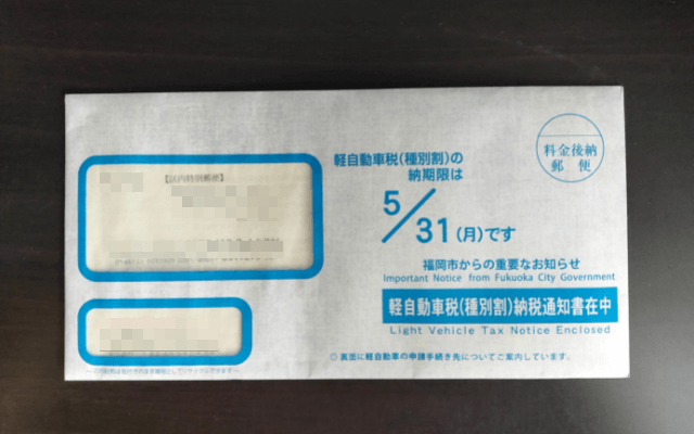 自動車税納付書が届きました。去年車を普通車から軽自動車に乗り換えたので、人生初の軽自動車の納税です。